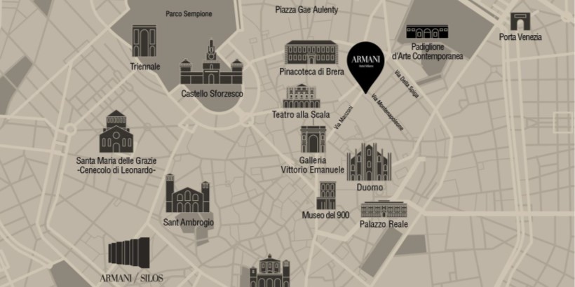 • Situated in Mr. Armani’s headquarters in Milan, shaped as an “A”, anchoring the world famous fashion district known as Quadrilatero della Moda.