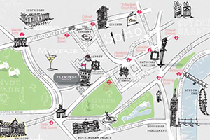 • Situated in one of London’s most exclusive neighborhoods of Mayfair. The hotel is steps away from Green Park, Piccadilly, and Buckingham Palace.