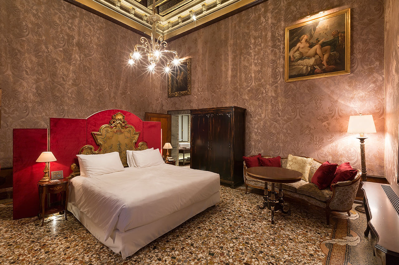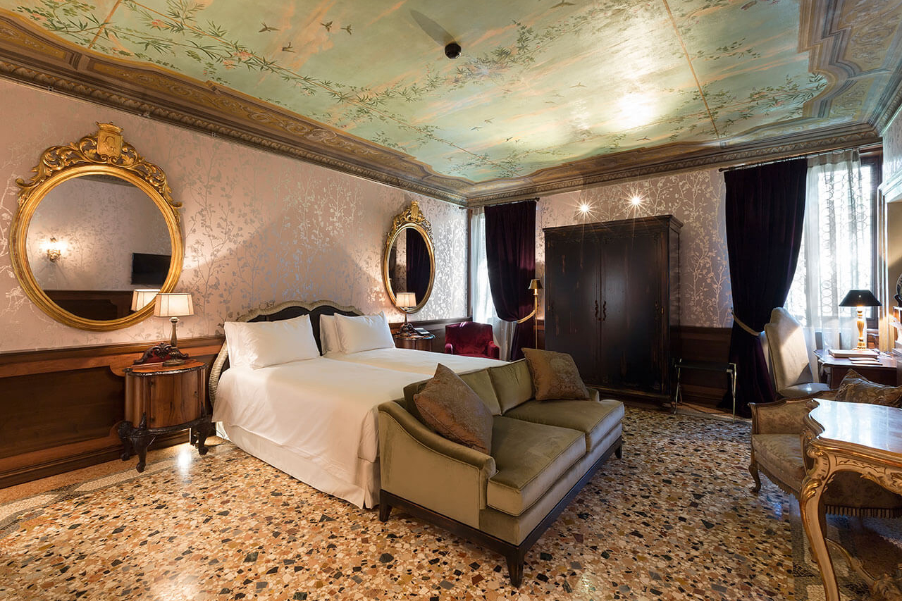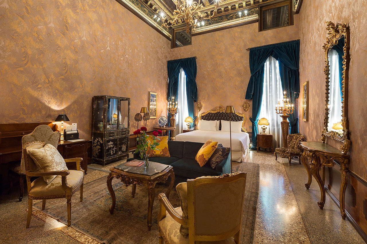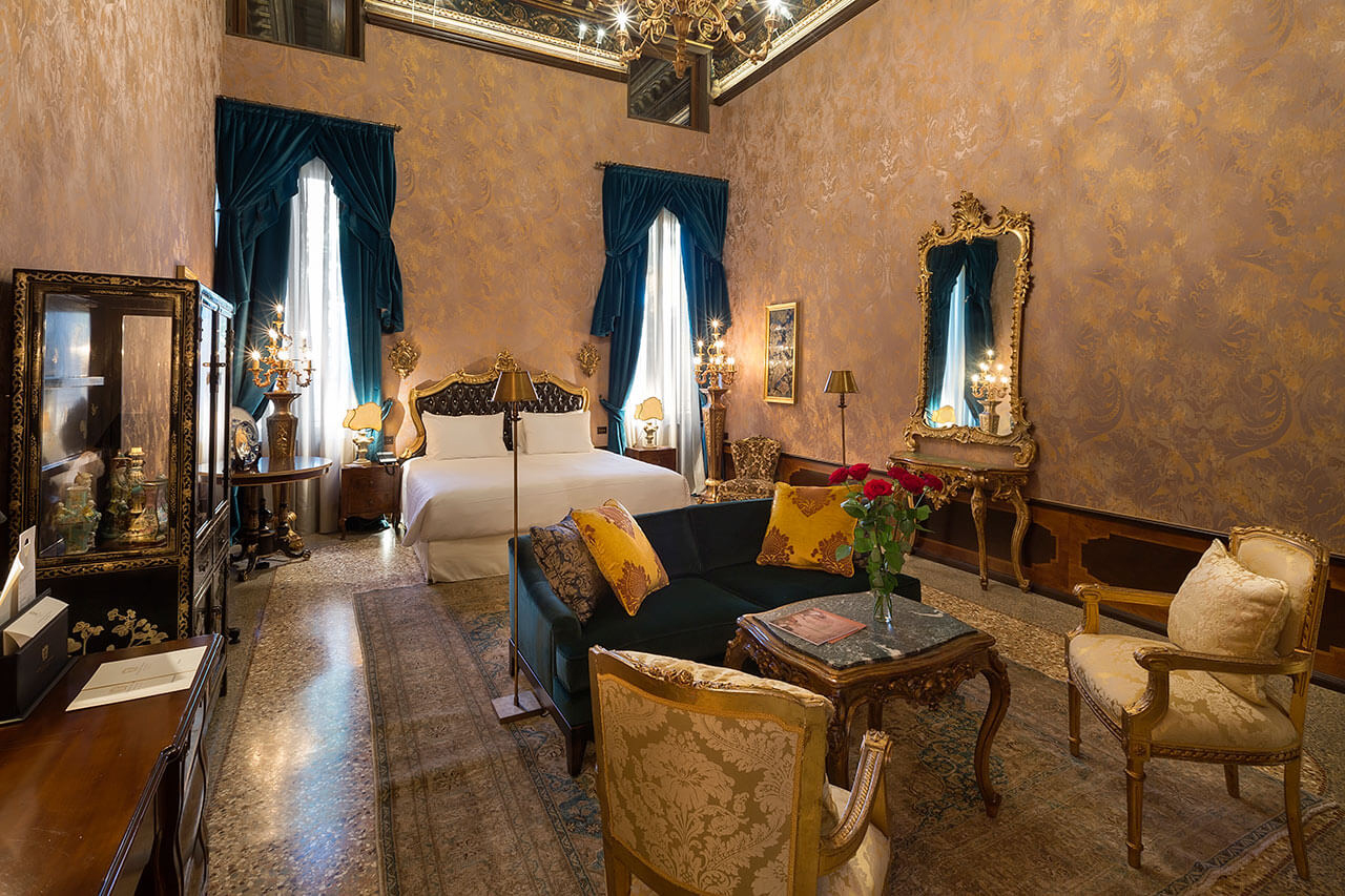 Original features which include Renaissance frescoes and marble fireplaces have been expertly restored by Venetian specialists and complemented with antiques and custom furnishings to display the Palazzo’s noble past.