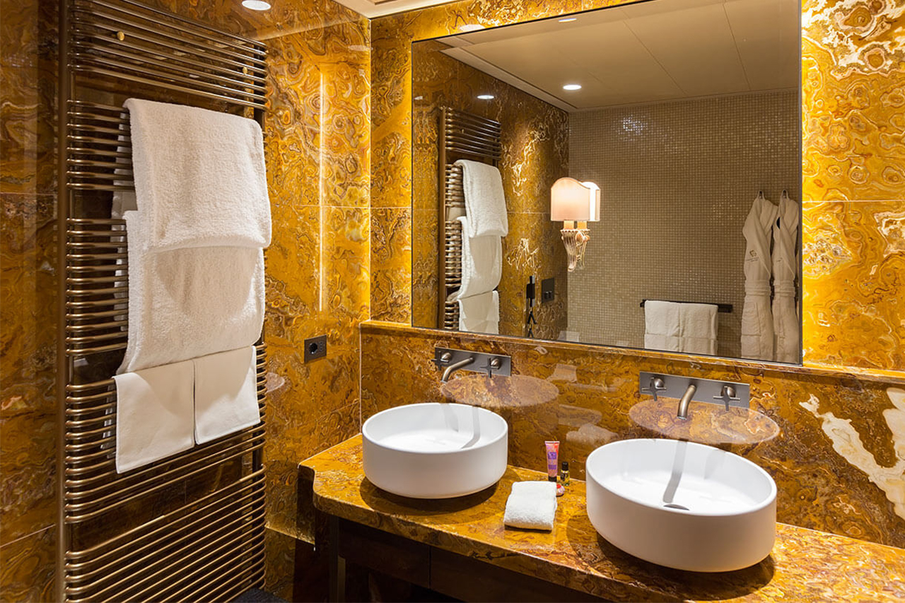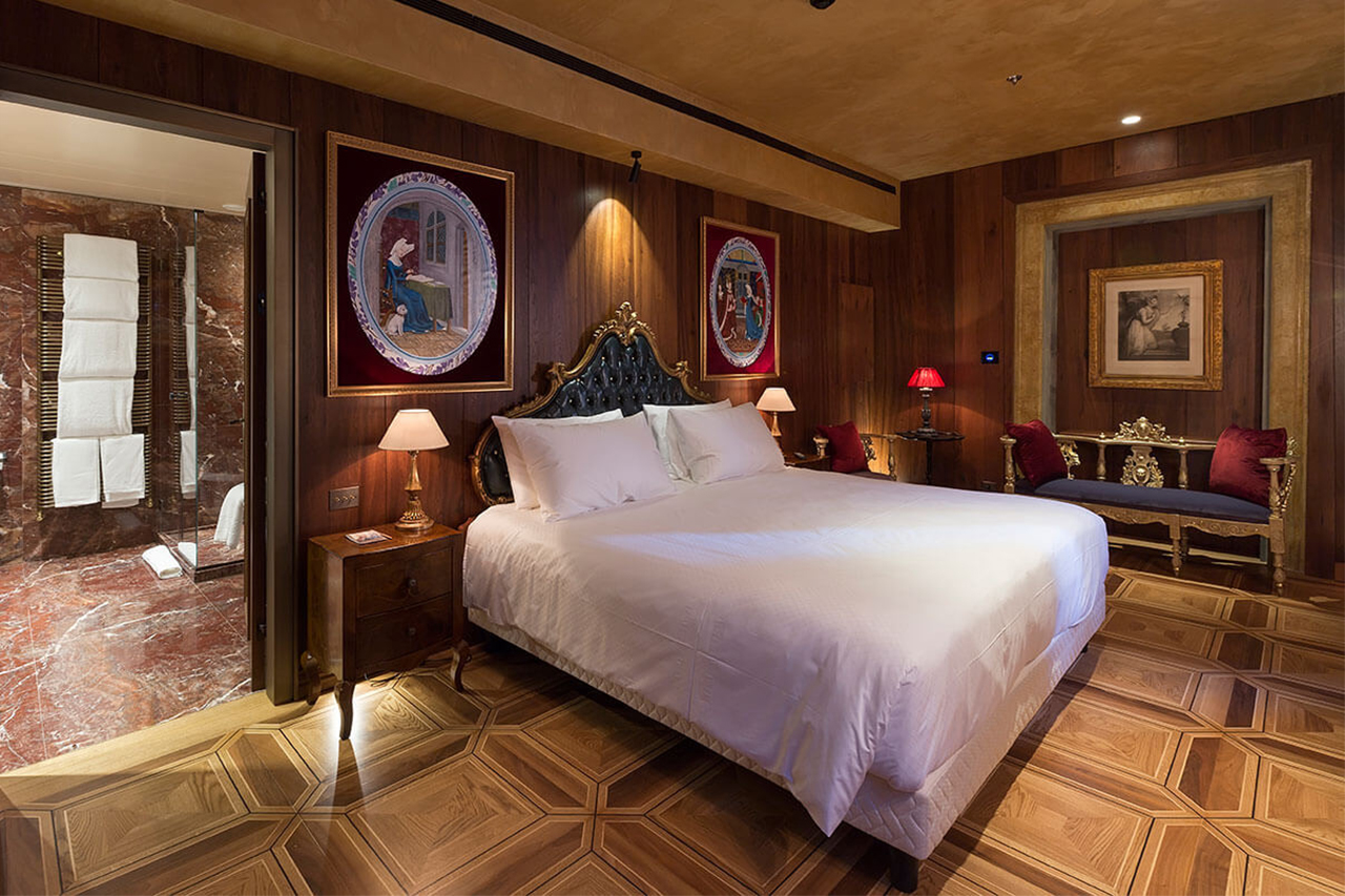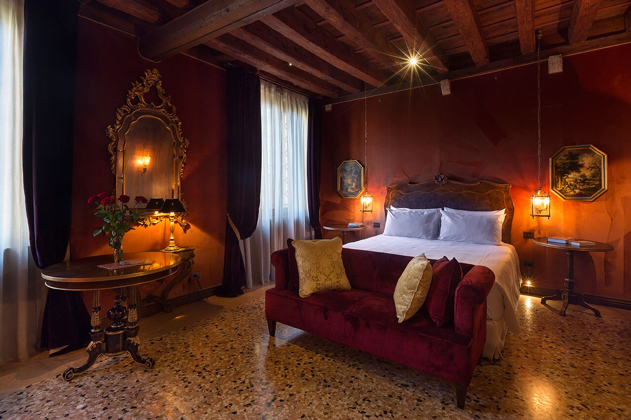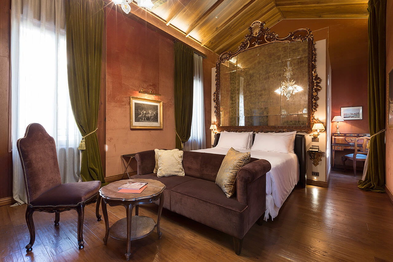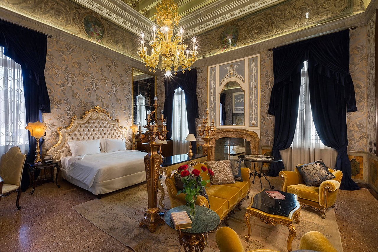 Original features which include Renaissance frescoes and marble fireplaces have been expertly restored by Venetian specialists and complemented with antiques and custom furnishings to display the Palazzo’s noble past.