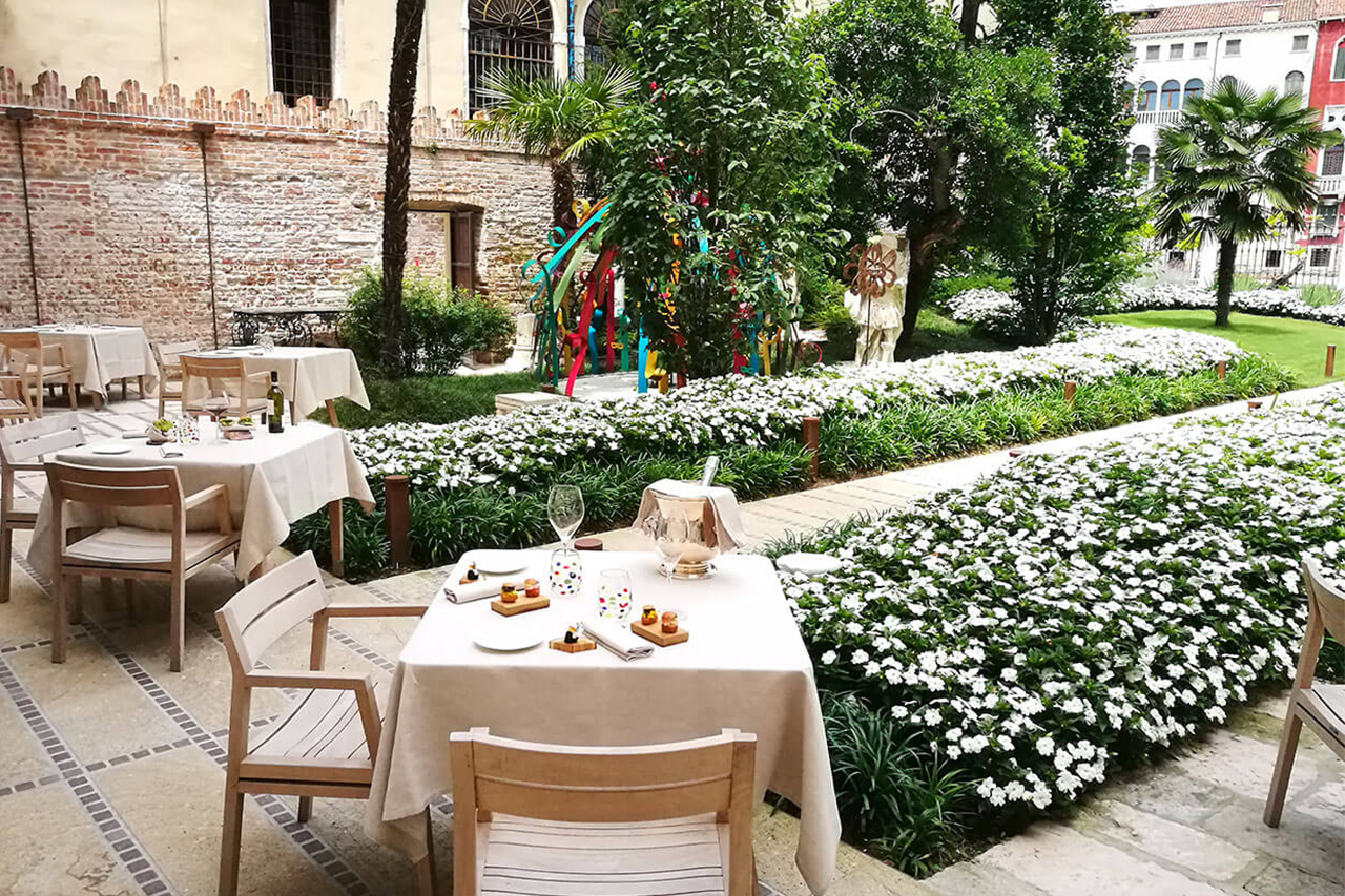 The stunning Palazzo Venart Luxury Hotel, a member of The Leading Hotels of the World opened its doors to the public in August 2016 and consists of 18 prestigious and fastidiously decorated rooms and suites, each based on a unique aspect of Venetian history and culture. Fronted by its placid garden which opens directly onto the Grand Canal, the entire 15th century Palazzo and grounds have been carefully restored to their former grandeur with minute attention to detail.