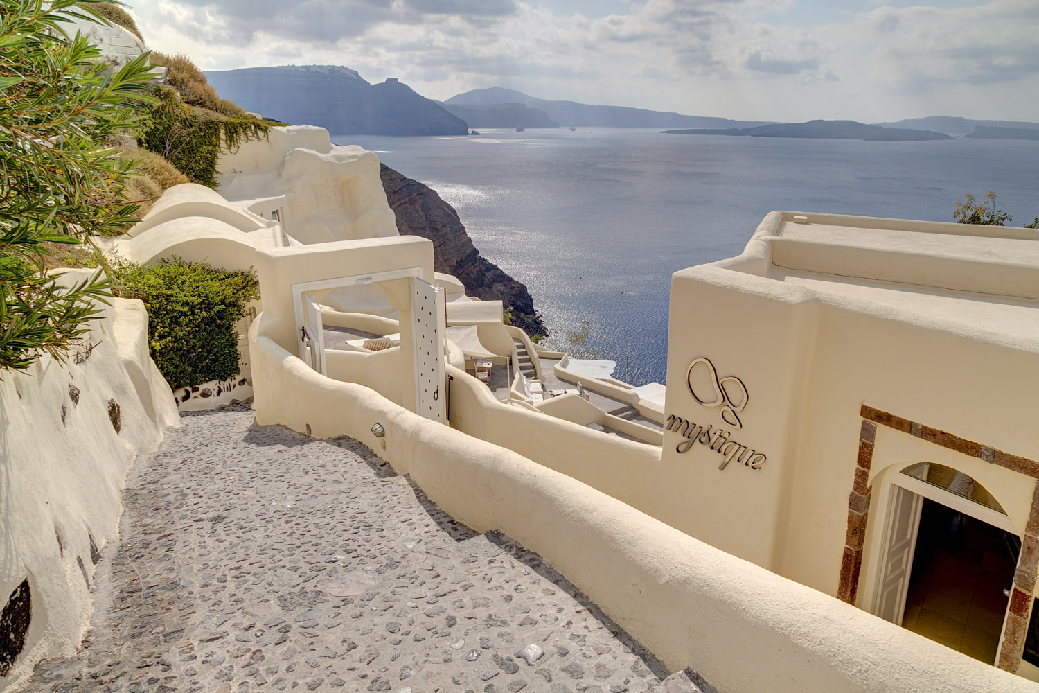 An exclusive hideaway in a natural world, Mystique, a Luxury Collection Hotel perfectly lends itself to wider exploration, gloriously open horizons of the captivating island of Santorini. Carved into the rugged Caldera cliffs, Mystique, overlooks the midnight blue waters of the Aegean Sea that encircles the island of Santorini. A favored destination for honeymoons and romantic escapes, Mystique emanates a carefree spirit, imparting an understated, exclusive feel, so reminiscent of the spectacular location.