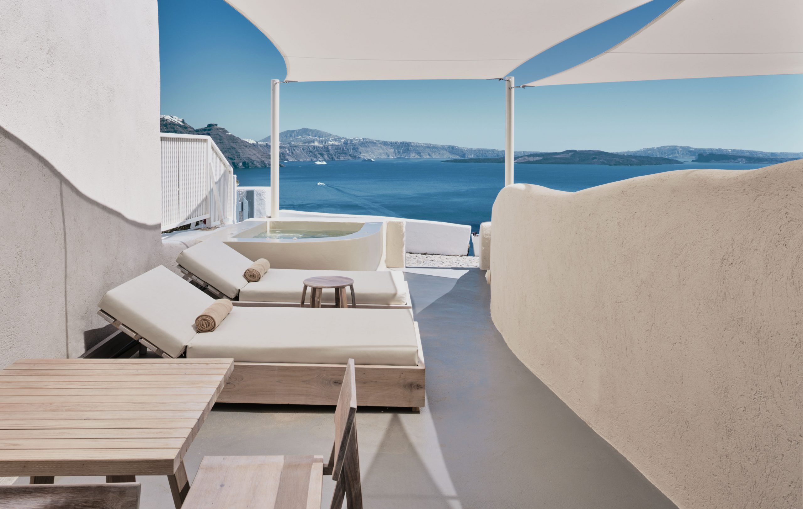 - All 41 suites and villas boast panoramic sea views across the active volcano that has shaped this exceptional island, while many of them feature private pools or jacuzzis.